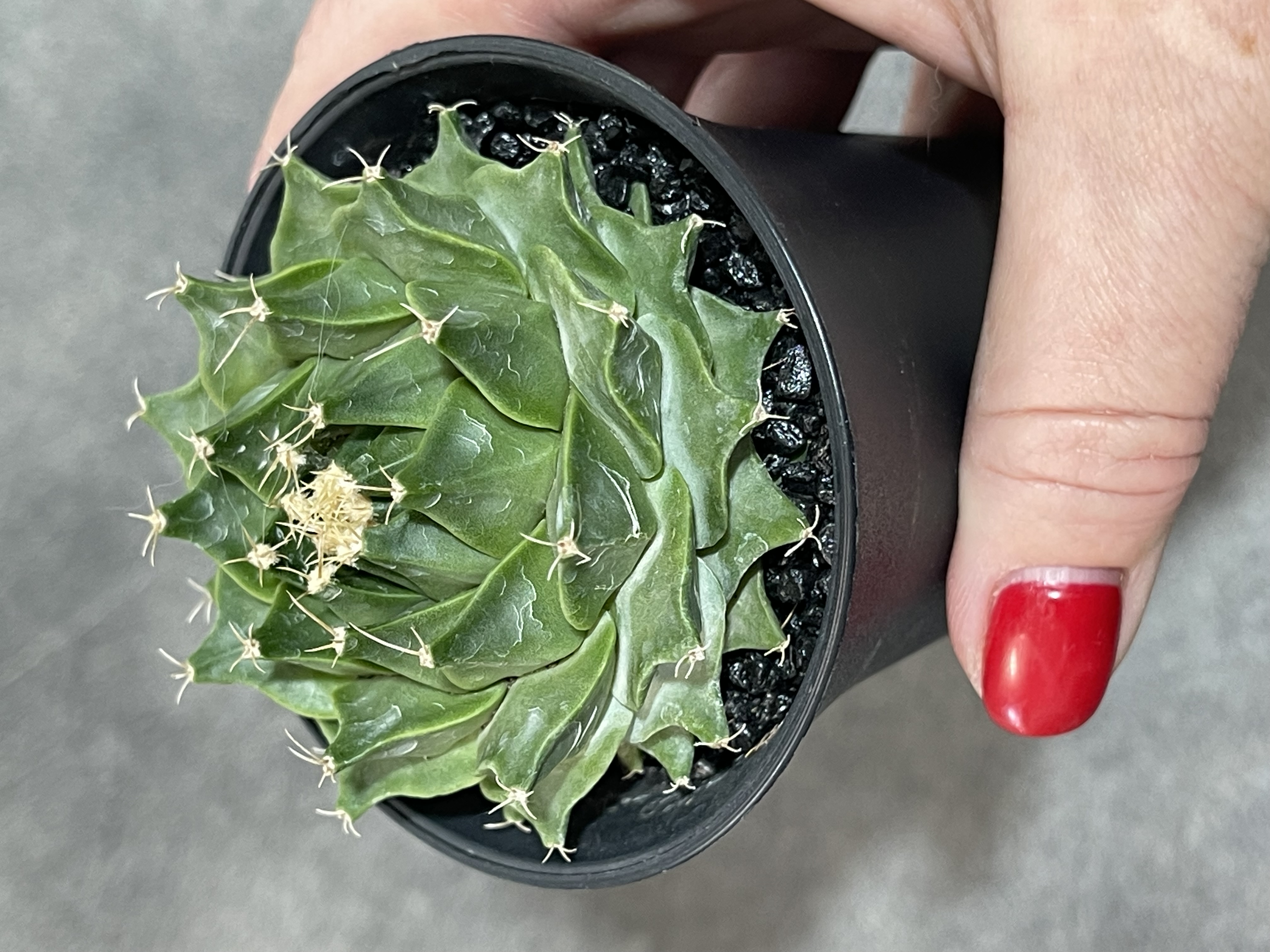 Или редкий вид Эскобария густоколючковая, называемая серебристым кактусом, со множеством белых, радиально расположенных колючек.