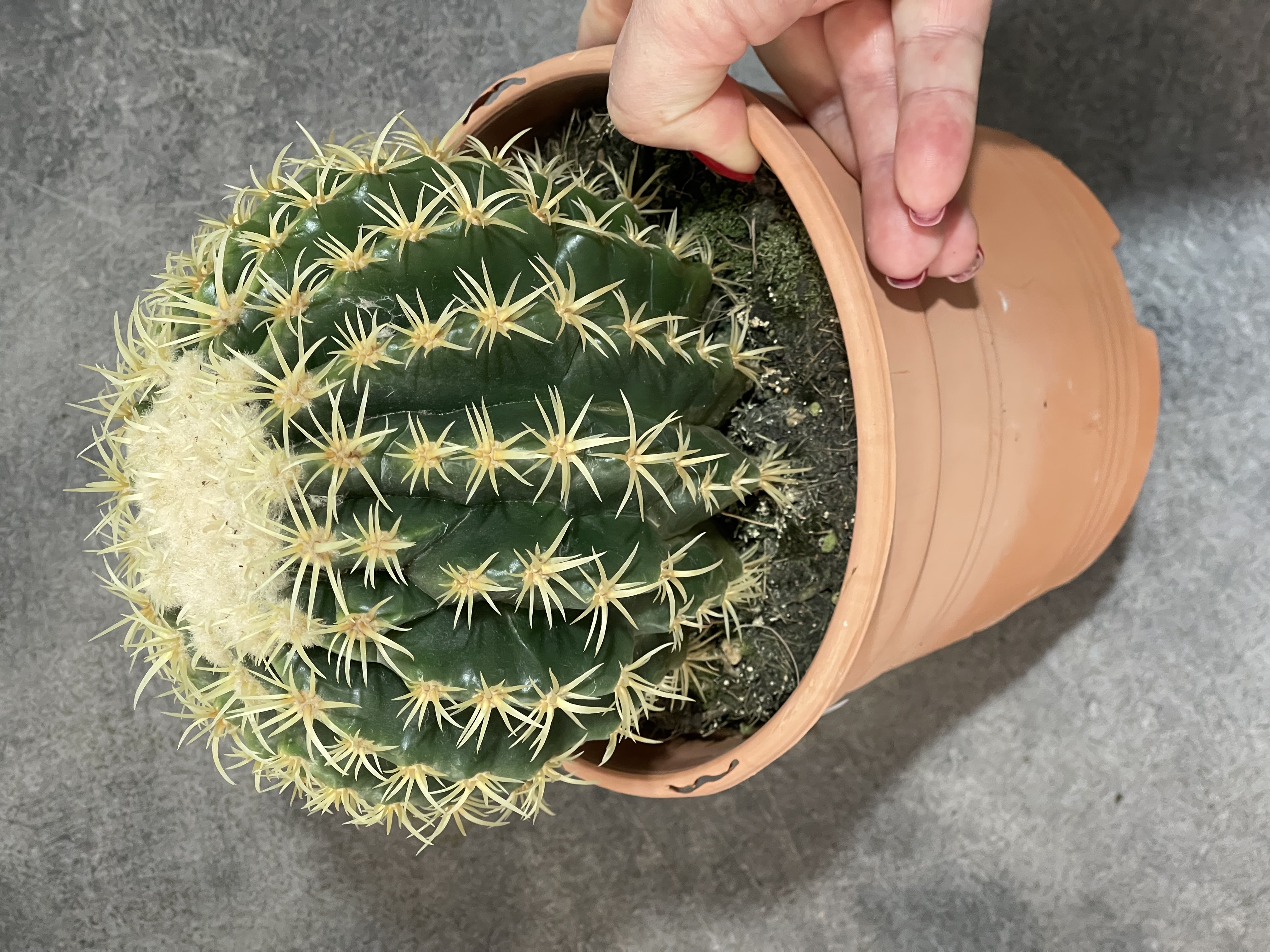 Эхинокактусы – простые в уходе, нетребовательные растения. В диких условиях вырастают до метра в диаметре. Распространенный вид в форме шара, имеет выраженные ребра и пучки колючек. В домашних условиях вырастает до 60 см в диаметре. Требуется яркий свет, можно с прямыми лучами, зимой дополнительно освещать фитолампой. Температуры содержания летом в районе 25С, зимой 12С. В теплое время полив рекомендуется осуществлять по мере полного высыхания субстрата, в период покоя сократить полностью. Кактус нетребователен к влажности, нет необходимости в опрыскивании.
