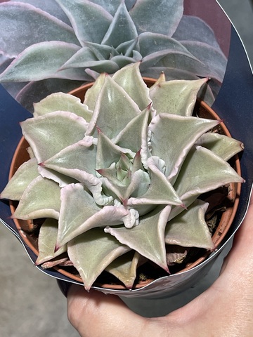 Эхеверия Мадиба медленно растет, не вытягиваясь, сохраняя свой удивительный внешний вид.