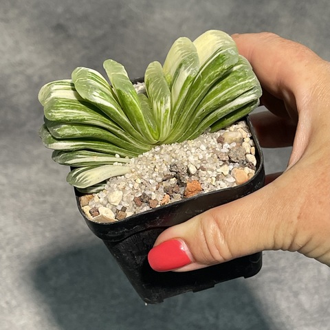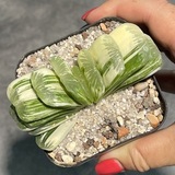 Редкая вариегатная форма усеченной Хавортии. Плоская веерообразная розетка из уникально окрашенных листьев прямоугольной формы. Лаймовый оттенок переходит в светло-зеленый на блестящих листовых пластинах. Выраженный стебель отсутствует, розетка начинается у самой почвы и напоминает страницы раскрытой книги.